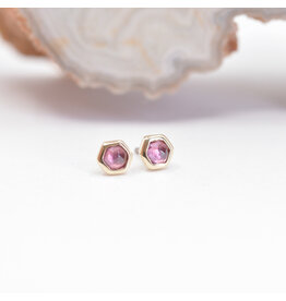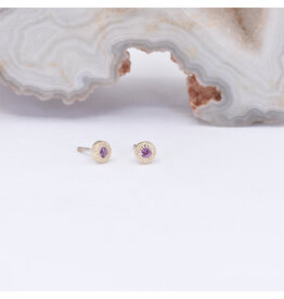 Decorative ring with a 3mm prong set princess cut Rhodolite Garnet. The prong set gem is fixed to one side and irremovable. Best worn in daith and septum piercings.