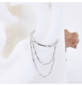 Ornate ring with 4x2.5mm pear shaped Grey Sapphire centered between two strands of delicate cable chain for texture and movement. Best worn in helix and conch piercings.