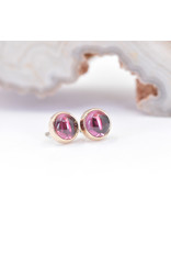 A 4mm Rhodolite Garnet cabochon wrapped in a smooth cup setting. This is a fan favorite, low profile end that is suitable for almost any placement!